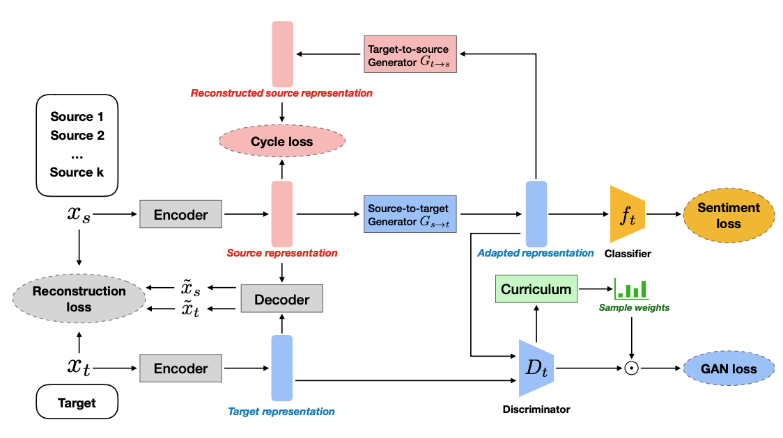 Curriculum Cyclegan for Textual Sentiment Domain Adaptation with Multiple Sources